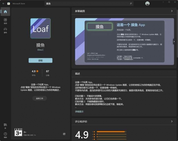 ▲ Windows 11 应用商店上架的「摸鱼」应用