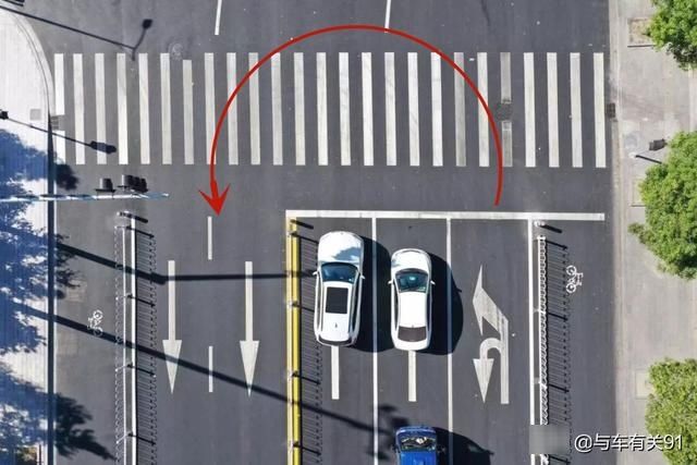 那当左转进行掉头的时候,应该怎么做呢?首先第一点,掉头要越过斑马线,不能压着斑马线掉头