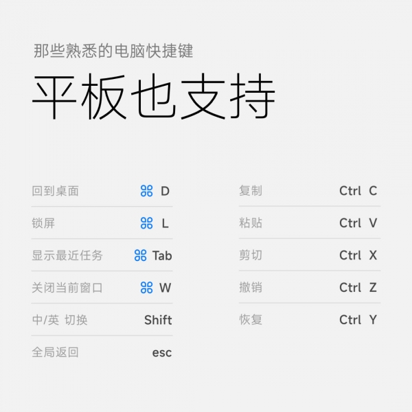 MIUI 13 Pad 让小米平板键盘独有的任务键更强大了!现在你可以通过它全局呼出任务栏、快速切换 / 打开应用,还支持熟悉的电脑快捷键。