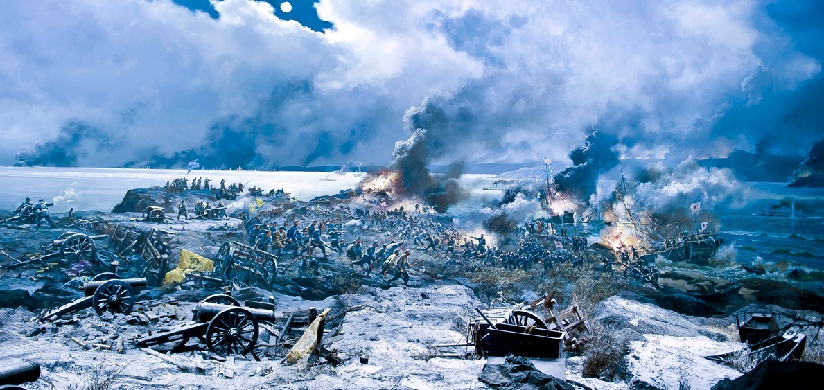 第三阶段,1895年1月到2月,日本将辽东半岛的陆军撤出,再登陆山东半岛,从陆地上包抄威海卫,与联合舰队配合作战,全歼北洋水师。清政府开启和谈。