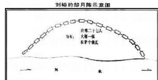 拓跋嗣看到刘裕摆出这么一个奇特的造型,很是奇怪,这个造型乍一看就像一个铁锅,盖在黄河岸边。拓跋嗣哈哈大笑,心想刘裕不懂兵法,因为河水边是不能设阵的,除非是韩信反而为之的"置之死地而后生",从来没有人在河水边设阵,因为这样的话,就没有退路了,在南宋时代,伪齐的一个大将李成就是在河水边设阵被岳飞嘲笑,自然被岳飞全歼。