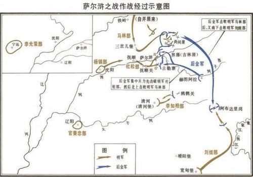 努尔哈赤在探知明军的军事行动之后,采取的应战方针是各个击破,“凭尔几路来,我只一路去”。努尔哈赤虽只有六万人马(也有说十万),但都是身经百战、战功显赫的勇士,说以一当十也不为过。所以,明军在人数上的优势根本算不上优势。