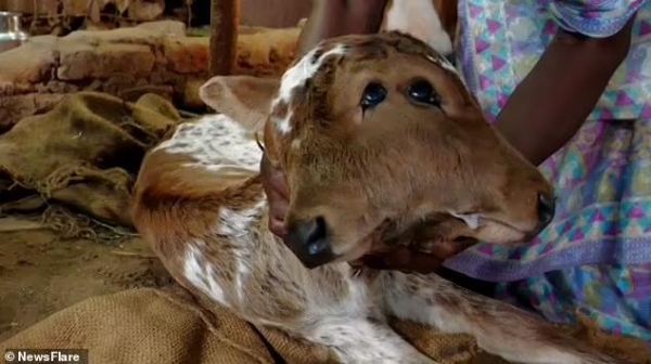 据英国《每日邮报》3日报道,在印度南部泰米尔纳德邦冈格艾孔丹镇(Gangaikondan),一头生下来就长着两个头、四只眼睛和两张嘴的小牛吸引当地人去围观。1月1日拍摄的一段视频显示,好奇的观众排起了长队,等着看这头和它母亲生活在一个棚子里的小牛。