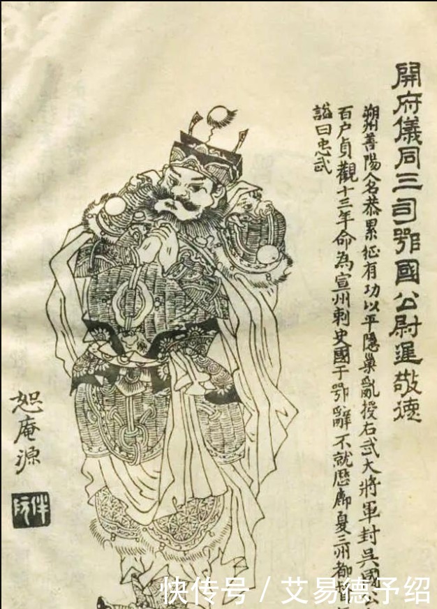 尉迟敬德是唐朝著名的开国将领。隋朝末年,跟随刘武周起兵。归顺唐朝后,跟随李世民平定各地的农民起义和割据政权。后参加玄武门之变,受封右武候大将军、吴国公。贞观十一年,拜上柱国、鄂国公。位列凌烟阁二十四功臣第七位。与秦琼一起,成为后世尊崇的门神。