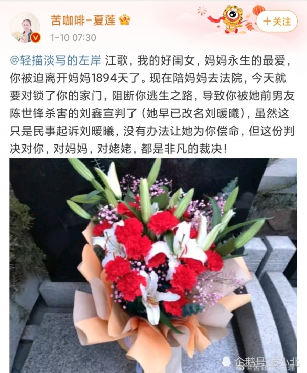 2022年1月10日,山东省青岛市城阳区人民法院对原告江秋莲与被告刘鑫(现已改名刘暖曦)生命权纠纷案作出一审判决:被告刘暖曦于判决生效之日起十日内赔偿原告江秋莲各项经济损失496000元及精神损害抚慰金200000元,并承担全部案件受理费。