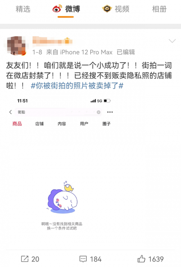 博主:“街拍”一词的微店已被封禁