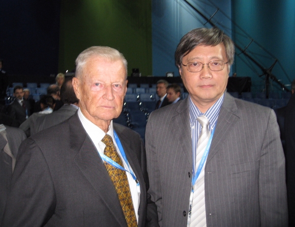 本文作者冯绍雷与美国战略专家布热津斯基(左)。图自文汇报