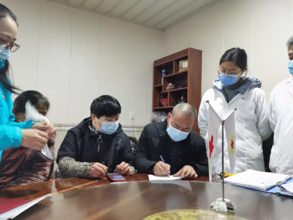 △屠楼宇父母在绍兴市红十字会工作人员的见证下签下遗体捐献确认单。