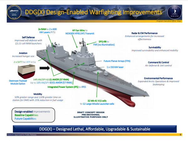 美国海军计划2028年开工基线版DDGX,目前的方案并未定案,只是方案理念展示。
