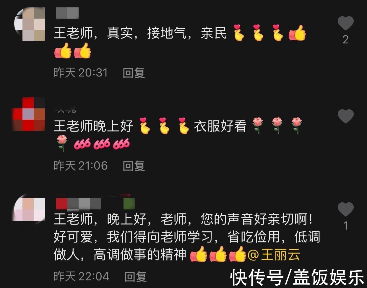 还有人觉得王丽云很真实,在生活中非常亲民,没有大咖架子,勤俭节约不铺张浪费也是一种美德,大家应该向她学习。