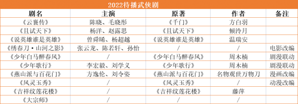 这些作品中在讲述方式和剧集内核上都更接近于传统武侠。不过,除了《说英雄谁是英雄》已经拍摄完毕外,其他两部剧都处于前期筹备阶段,与观众见面或许要等到2023年了。