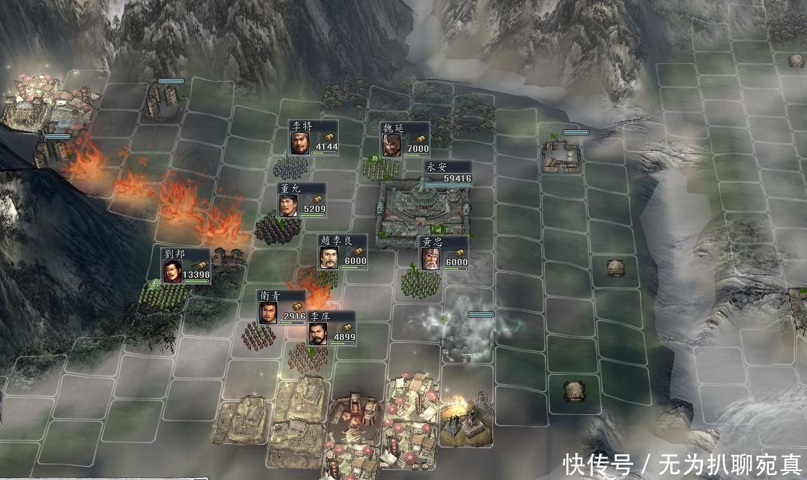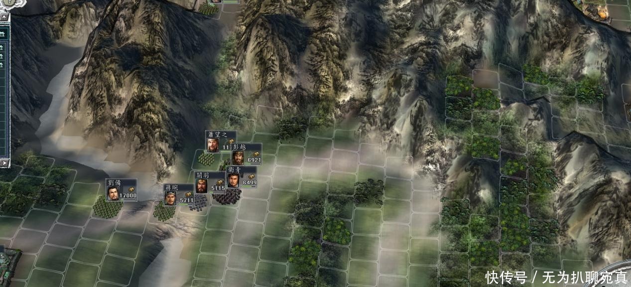 西线战场虽然广,西汉武将也很强悍,同样可以凭借地形建造军乐台、大鼓台、箭楼这样的防御攻势。手上的武将关羽、张飞、赵云、马超、黄忠等人武力都是90,关张破100。用他们作为单独编队在大鼓台的范围内单挑对方武将,成功率极高,单挑获胜的俘虏率极高。当西汉势力无将可用的情况下,蜀汉就可以像历史上一样,出兵迅速占领益州,破局轻而易举。