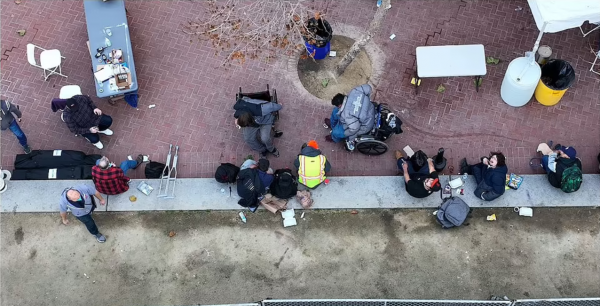 美国记者迈克尔·谢伦伯格(Michael Shellenberger)是最早报道洛杉矶市救助站公开吸毒事件的人。他在自己的私人订阅号中写道,“在广场上,有数百人聚在一起公开交易、吸食和注射毒品,一辆洛杉矶警车驶过,什么事也没有做”。