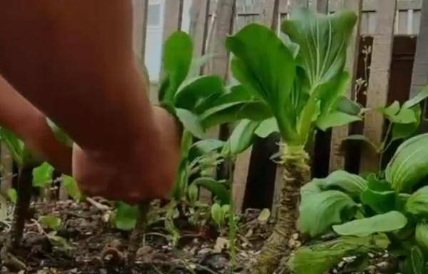 这些上海青到底经历了什么?男子解释:“因为自己比较懒,上海青这样掰着吃很方便,吃一点掰一点,然后还会再长出来。这样就能不种菜又一直有菜吃了。”