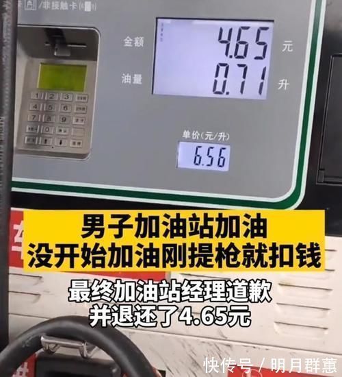 近日江西上饶一位车主去加油站加油,刚提起油枪还未开始加油,加油机就显示开始计费,这让他颇为诧异。他录下了这一幕,并找加油站领导投诉,最终加油站道歉,并赔了多收的4.65元。