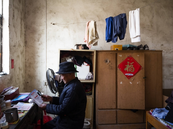 “每个月200生活费就够了,能帮孩子们减轻一点负担算一点。”毛宏礼住在20平米的屋子里,简易的家具破旧。他平时只要做一个人的伙食,不到半个小时,饭菜上桌——一碗米粥、一份咸菜,有时干脆热点剩饭。