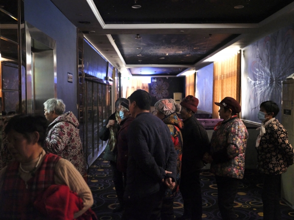 王明乐自家的院子也成了老人的聚集地。每天下午2点,他们吃过午饭,会拿着板凳过来。有时王明乐带他们做游戏,一些老人也会唱上几句地方戏。2021年冬天,考虑到室外气温低,王明乐决定让老人们去村口的KTV里跳舞,每次跳一个多小时。50元/时的费用王明乐来承担。很多老人是第一次去KTV,王明乐教老人用电梯,在点歌器上选歌曲。“觉得好,灯一闪一闪的。”有老人说。