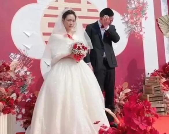 一对新人结婚举办婚礼时,还没举行仪式新郎在台上已经哭成了泪人。新娘看见身边的老公这幅模样,在旁边一直安抚新郎的情绪。