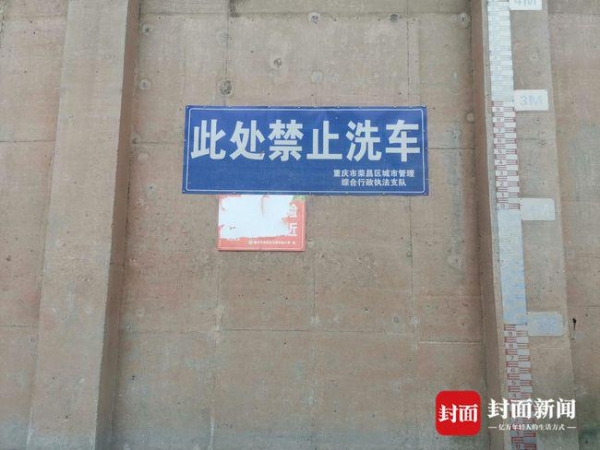 尽管河边贴有 " 此处禁止洗车 "、" 禁止停放车辆 " 的告示,但由于监管不够到位,仍有不少市民在此搓洗衣物、钓鱼等。