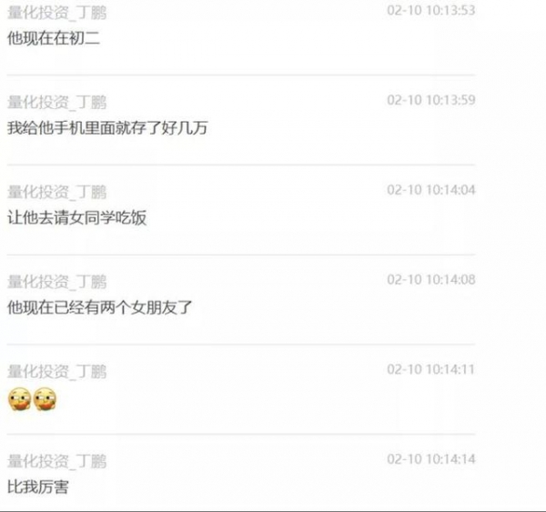 2月10日晚间,知名量化投资人丁鹏竟让儿子“渣一点”的奇葩教育观迅速在网络上传播,引得网友直呼吃到大瓜。