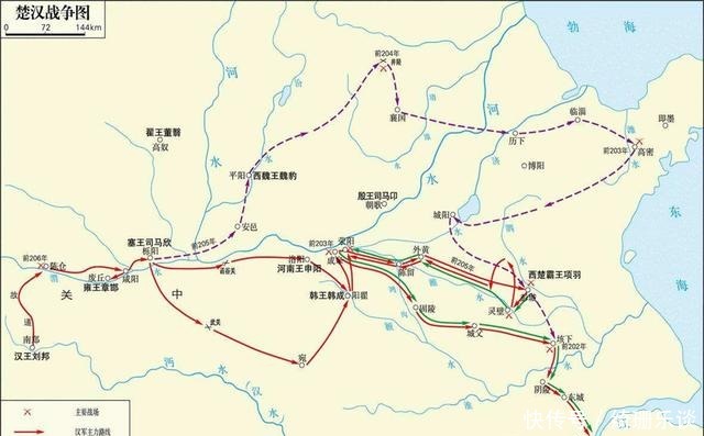 刘邦趁着项羽腹地空虚的机会,留下韩信继续围攻废丘的章邯,自己亲自率领主力出关攻打项羽。刘邦采取了为楚怀王发丧的办法,打着为楚怀王报仇的旗号,团结了一批对项羽不满的诸侯。