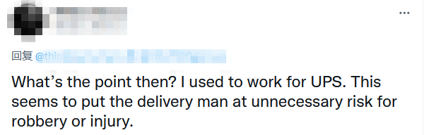 “这样有什么意义呢?我曾经在UPS工作。这似乎使送货员面临不必要的抢劫或受伤风险。”