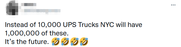 “不是10000辆UPS卡车,纽约市将拥有的是1000000辆三轮车。这就是未来。”