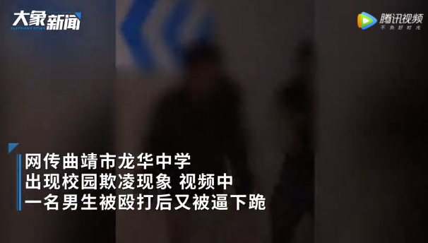 2月17日,云南曲靖,网传曲靖市沾益区龙华中学的校园欺凌,一名男生被逼迫下跪殴打并要求不准报警。 视频中,男生被逼下跪被多人飞踹强迫吸烟,并要求不准报警。