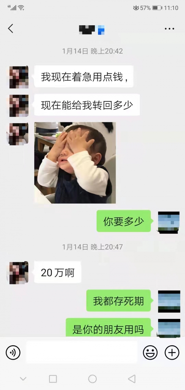 1月15日,姐姐的微信给弟弟发来一张招商银行的卡号,收款人“王艳红”,但并不知道这是谁的名字。