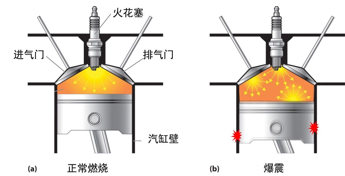 由于爆震会损伤发动机,所以当出现爆震时发动机控制电脑就要迅速减小点火提前角,消除爆震。而减小点火提前角以后必然会导致发动机动力下降,油耗增加。