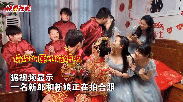 2月22日,河南一段新郎新娘和一群伴郎伴娘拍合照的视频引起众多网友点赞。据视频显示,一名新郎和新娘正在拍合照,身后站着一群伴郎和伴娘。