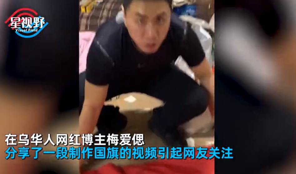 2月25日,乌克兰,在乌华人网红博主梅爱偲,分享了一段制作国旗的视频,引起了网友关注。视频中,他与家人朋友在地下室避难,和家人手工自制了一面五星红旗。