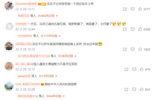 看到这些在乌同胞们用尽各种办法自制中国国旗,国内网友们也帮忙支招,期盼他们能平安渡过危机,早日安全回家。