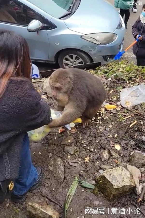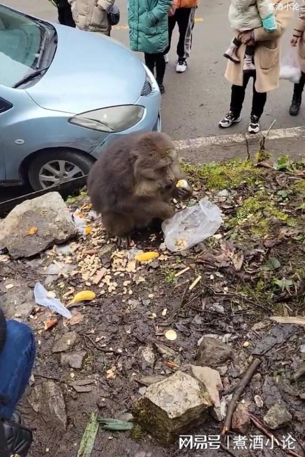 万物蛰伏的季节里,小动物总给人饥寒交迫的感觉,惹得情感丰富的人疼惜。路边有猴子觅食,秦女士便放低身姿、蹲在地上拿出食物投喂。没想到这只猴子还挑嘴,给它的火腿肠不吃,吃鸡蛋倒是津津有味。