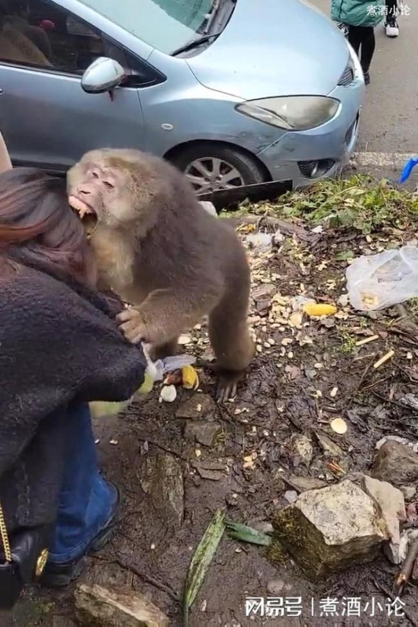 2月26日,四川成都的秦女士经历了吓人的一幕,她在山上游玩时蹲在地上喂猴子,猴子吃完一个鸡蛋后又过来抢东西,没能得手后忽然翻脸,恼羞成怒地扑上来抓着她的头发,张开大嘴、露出尖牙啃咬她的脑袋,把在场的人都吓得一阵惊呼。