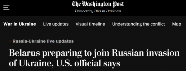 (观察者网讯)据《华盛顿邮报》28日消息,一名不愿意透露姓名的美国政府官员当地时间27日晚间表示,白俄罗斯准备最快于28日派遣士兵前往乌克兰,目前,白俄罗斯尚未对此进行回应。