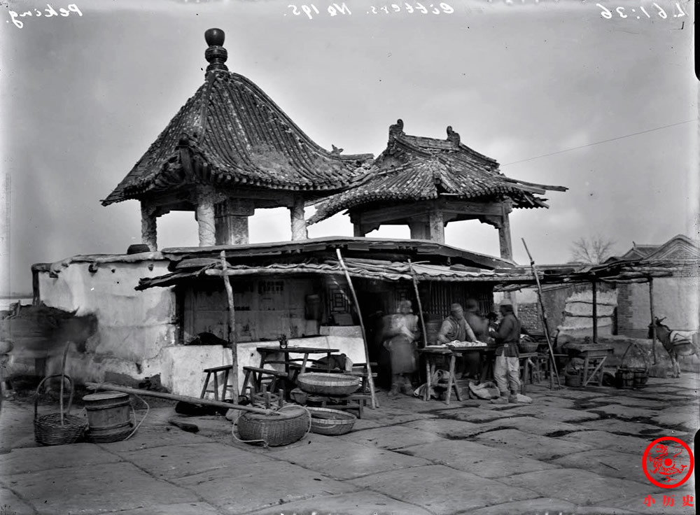 有过往商贩正驻足购买,桌子上摆着的很像烧饼。