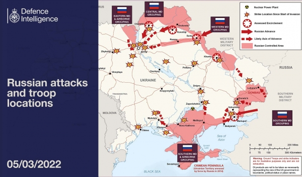 英国国防部3月5日推测的战线情况