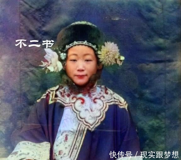 照片拍摄于清末时期,坐在椅子上的一名女性,不管是领口的装饰品,还是手上戴着的指套,都彰显出她的身份不一般。