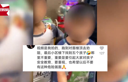 女子事后表示:视频是我拍的,跑到对面楼顶去劝阻,最后小区楼下找到5个孩子。哪里不重要,重要的是要引起大家对孩子的安全教育,要重视,也希望以后不要再有这样的危险画面。网友表示:这也太恐怖了,隔着屏幕都要吓死了!