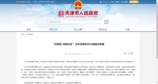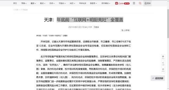 6个月后,即2021年8月,天津《今晚报》发表了一篇题为《年底前“互联网+明厨亮灶”全覆盖》的报道。