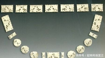 白玉各带一副,包括二十块,分为銙和铊尾,每块上均镂雕秋葵叶,花叶舒展,雕琢精致。