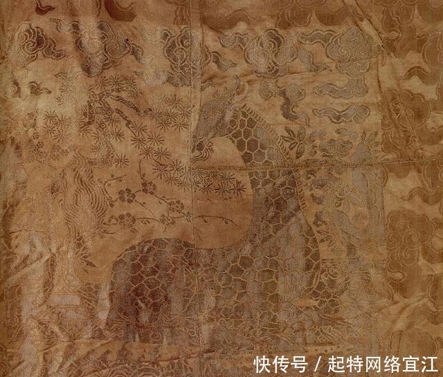 明徐达五世孙徐俌墓内所出圆领上之麒麟胸背,麒麟作长颈鹿状。