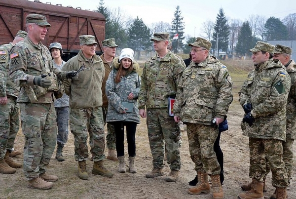 2016年11月23日,北约欧洲盟军最高司令,美国空军上将柯蒂斯·斯卡帕罗蒂访问“国际维和与安全中心”,图中左4为柯蒂斯·斯卡帕罗蒂(资料图) 图源:乌克兰国防部