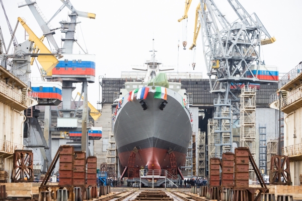 2021年10月28日,印度海军“塔尔瓦”级护卫舰“图希尔”(梵语意为“盾牌”)号在俄波罗的海扬塔尔造船厂下水,该舰正是因俄乌军事装备合作破裂而一度停建的原俄海军11356型“布塔科夫海军上将”号
