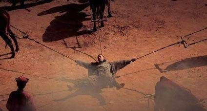 在车裂的过程中,人四肢的反射弧肯定会不由自主向内拉扯,李存孝天生神力,结果他直接将五匹马拉的倒退,由此十几个回合都是这样。为了能够死的痛快,李存孝将自己的手筋脚筋挑破,最终死无全尸。