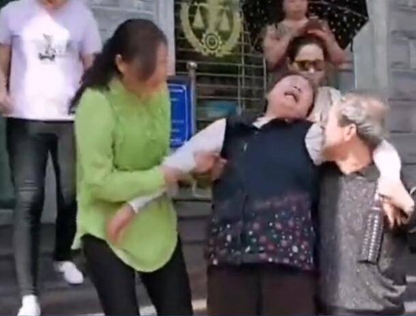 王某欣的父母在审判结束后失声痛哭、跪倒在地向法官致谢。
