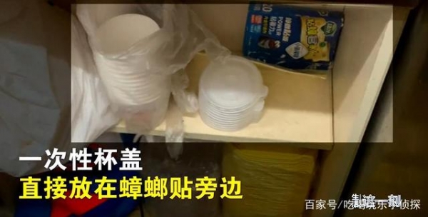 一次性杯盖的旁边竟然是“蟑螂贴”,你还敢拿它们喝豆浆、喝咖啡吗?