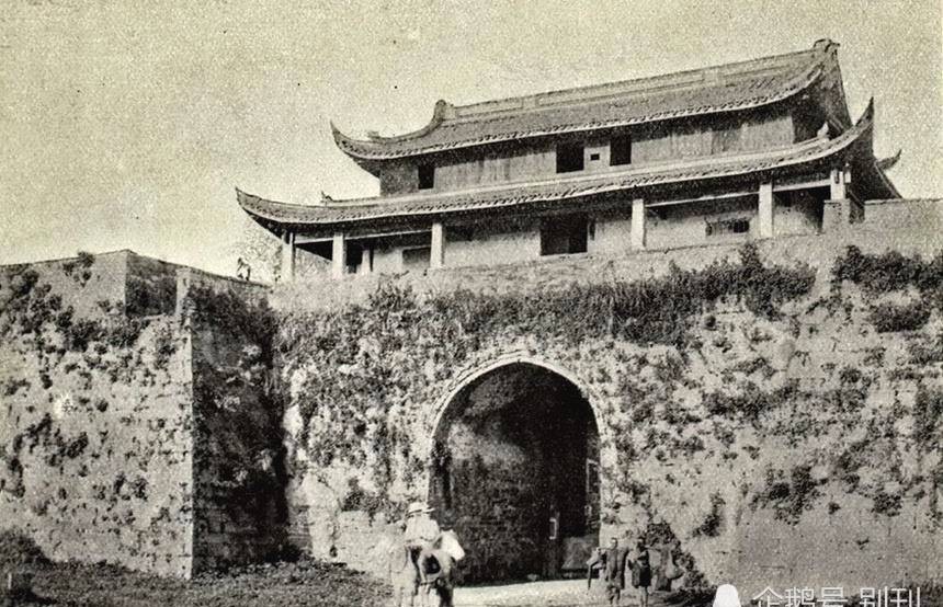 光绪二十四年老照片:杭州城的西城门,城门口很是荒凉,城墙上的草看上去至少也有好多年没拔了,往日具有战略意义的古城墙,多少都会有一种没落的感觉!