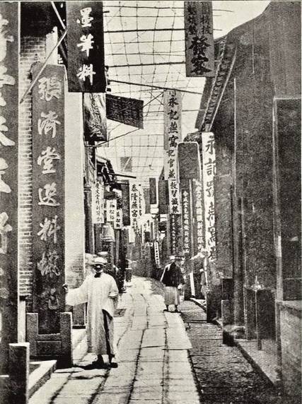 光绪二十四年老照片:汉口一条商业街道,招牌林立,但是街上确实行人稀少!